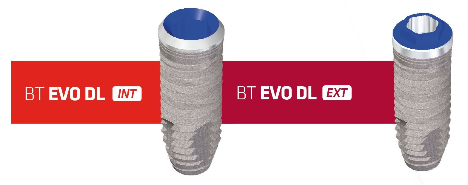 IMPIANTO BT EVO • Impianto dal nocciolo cilindrico, con profilo delle spire che conferisce leggera conicità • Apice dell’impianto semisferico, ideale per la chirurgia non invasiva • Disponibile nelle versioni “Tradizionale” e “DL” (senza dispositivo di montaggio) • Disponibile con connessione ad esagono interno e ad esagono esterno |