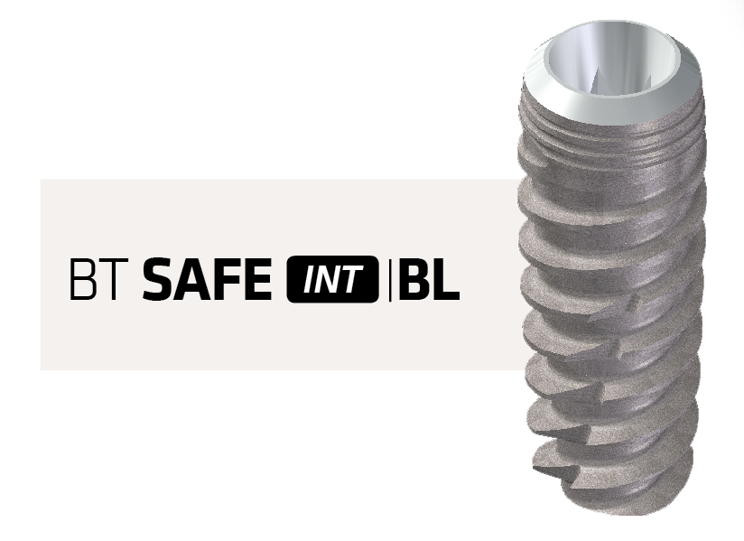 IMPIANTO BT SAFE BL • Massima preservazione dell’osso corticale • Ideale in situazioni di scarsa qualità ossea • Disponibile nella versione “Bone Level” • Disponibile con connessione conico-esagonale |