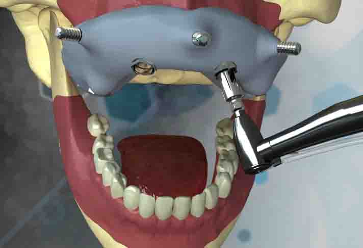 INSERIMENTO DEL PROVVISORIO La metodica di chirurgia guidata BTK-3D permette di progettare virtualmente il posizionamento implantare e trasferire la pianificazione sul modello anatomico. Sul modello è possibile costruire preventivamente la protesi provvisoria che viene montata nella fase post-intervento, consentendo il carico immediato. In questo modo la progettazione computer-assistita consente di migliorare il posizionamento degli impianti in funzione di una riabilitazione protesica ottimale che rispetta i canoni di estetica, corretto rapporto occlusale e dimensione verticale. |