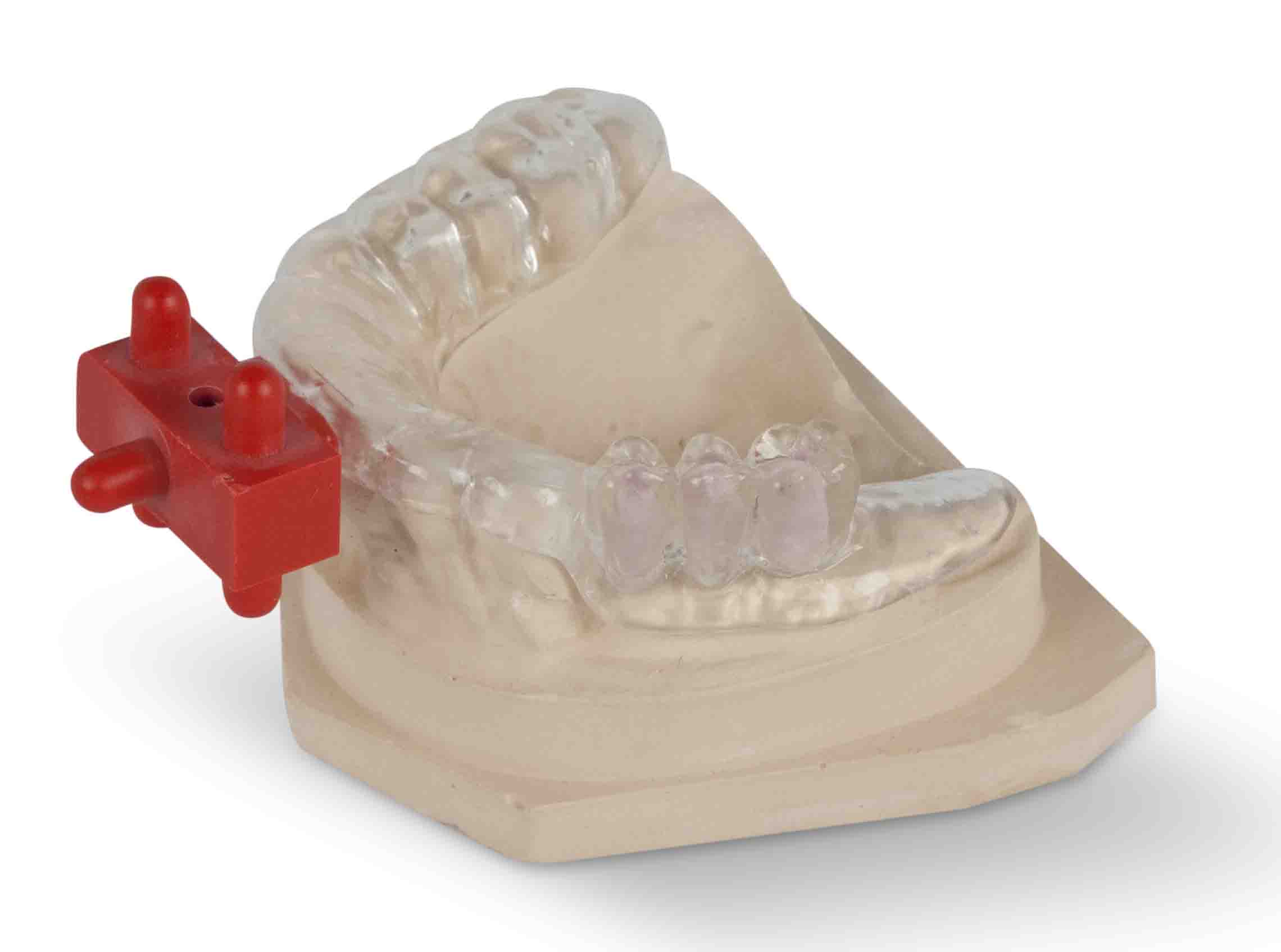 • Provare la dima sul paziente: verificare che calzi accuratamente e che la registrazione occlusale separi nettamente i denti dell’arcata inferiore e superiore.